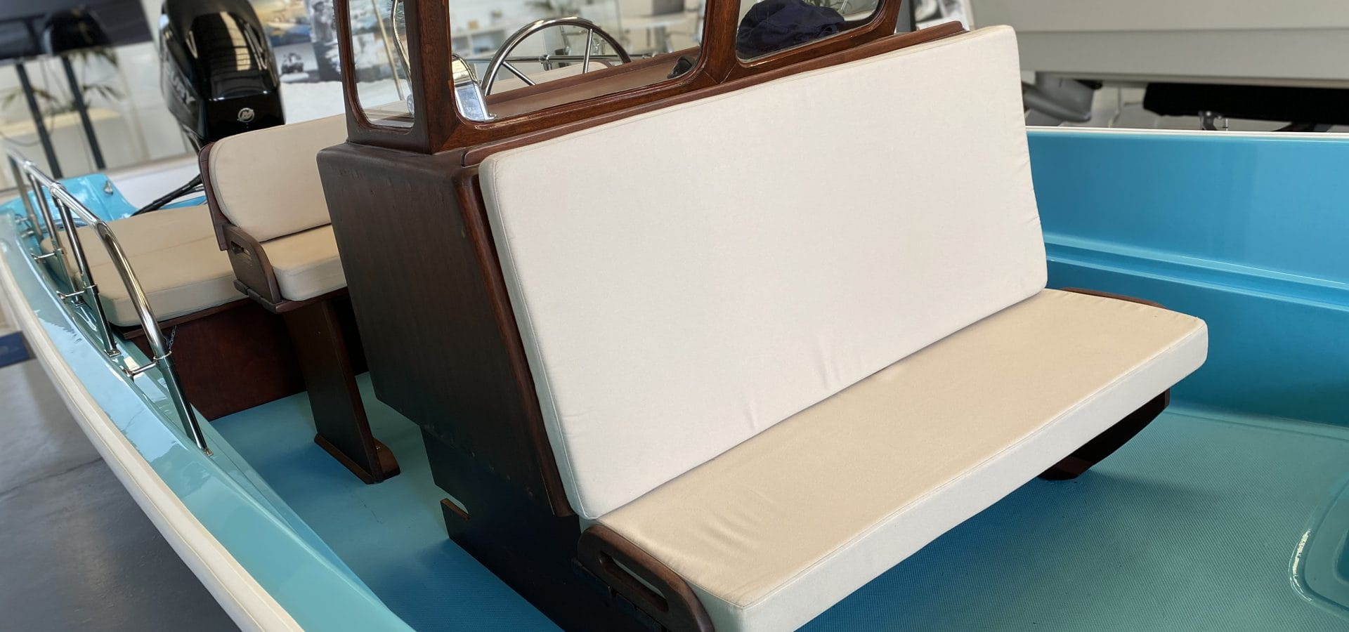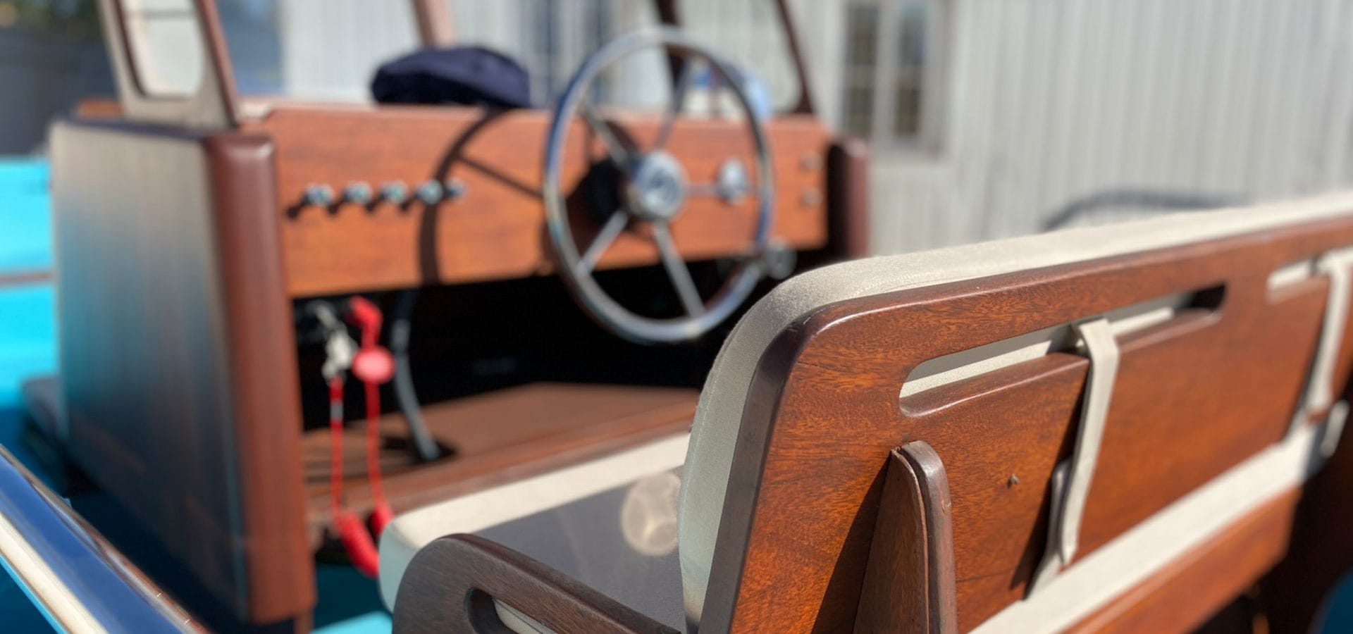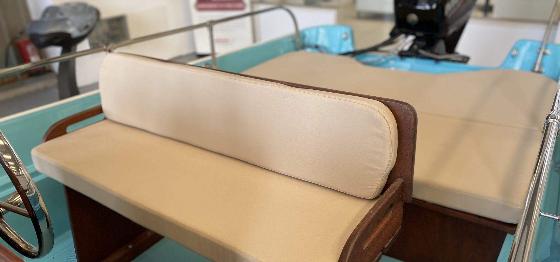The Eastport was a step up from the Nauset, designed for owners who wanted more seating. For an additional $160 (c.1970) you got a rear seat, a fire extinguisher, a compass, and seven cushions, bringing the price to $2,180.