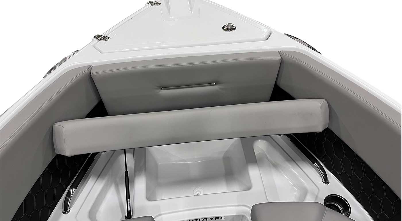 Spacious Bow Area – deep seating with armrests, ideal for socializing.