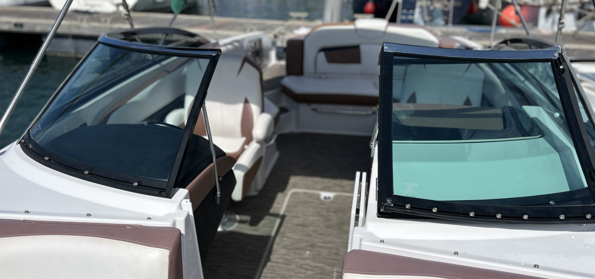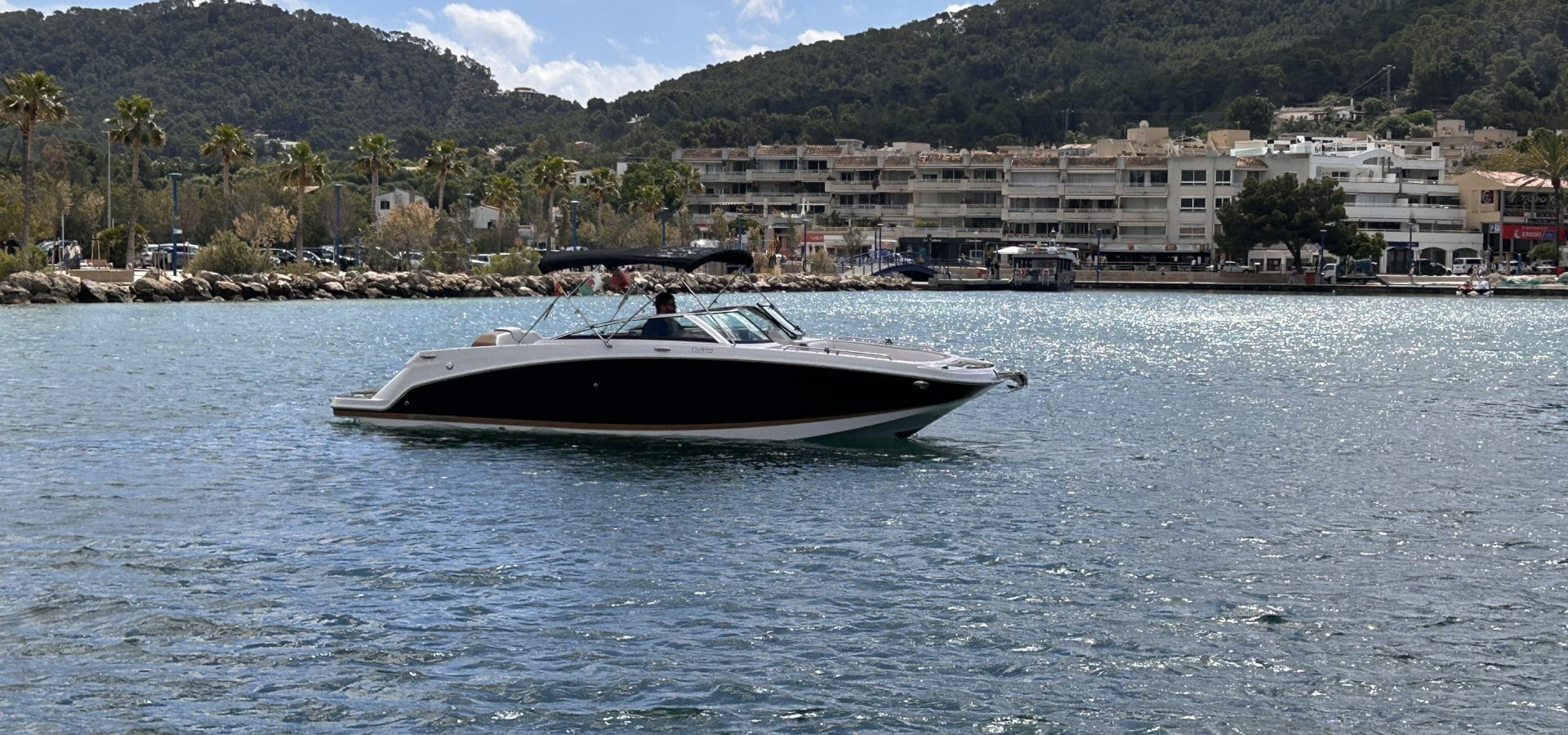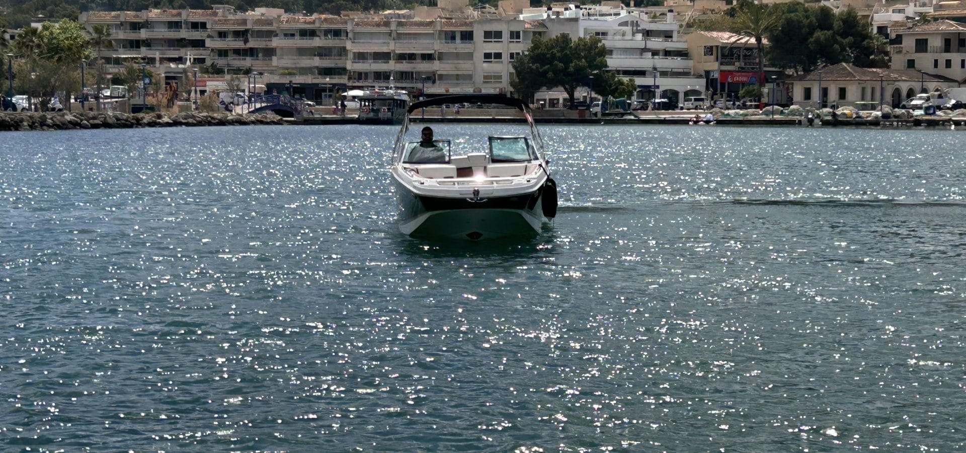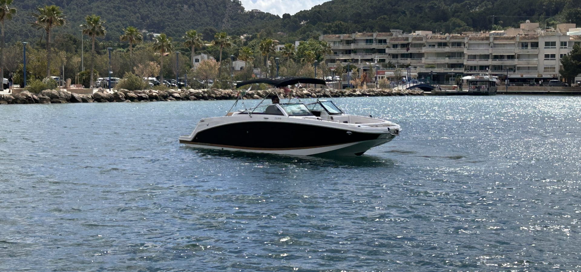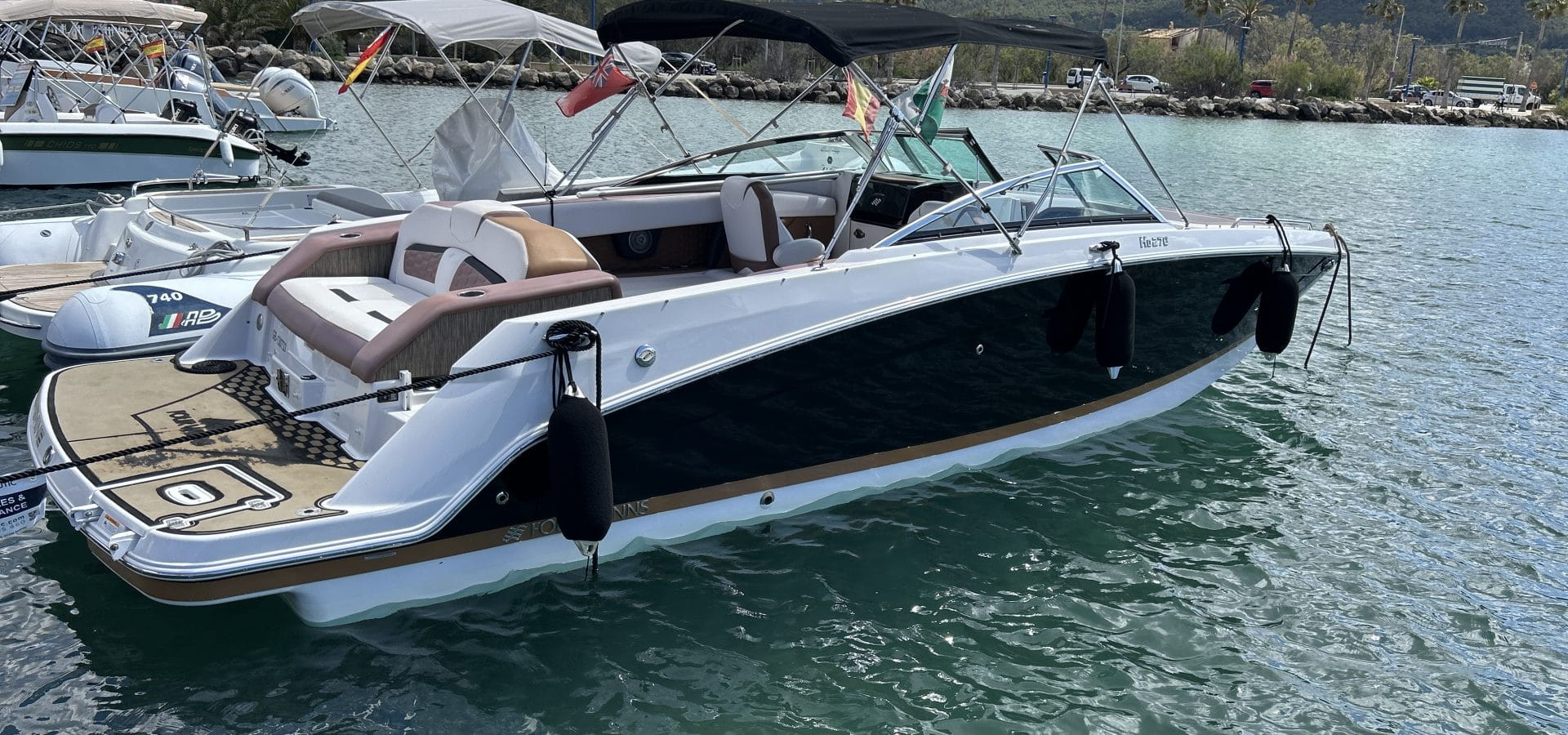 This model is equipped with a Bimini top for sun protection, high-quality sound systems for an immersive audio experience, GPS plotter with depth sounder for confident navigation, accent lighting for evening ambiance, and integrated swim platforms that invite effortless enjoyment of the water.
