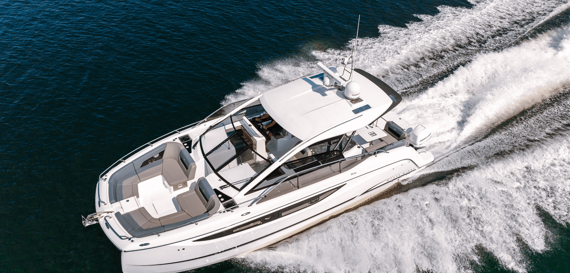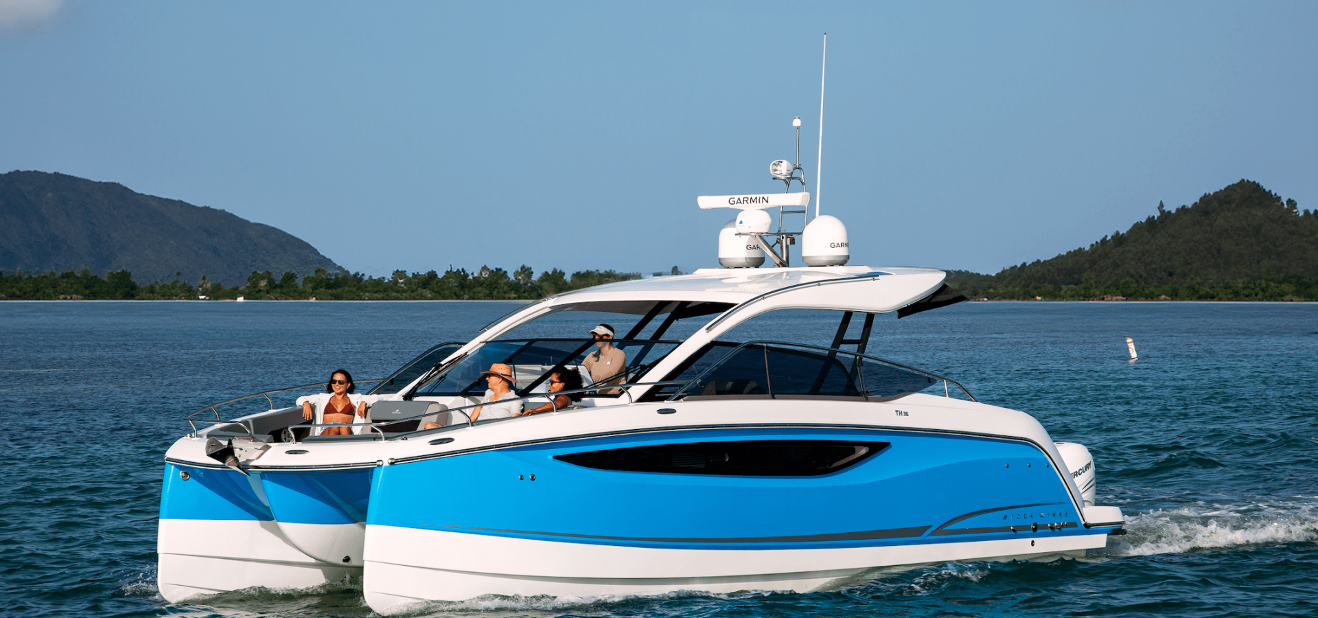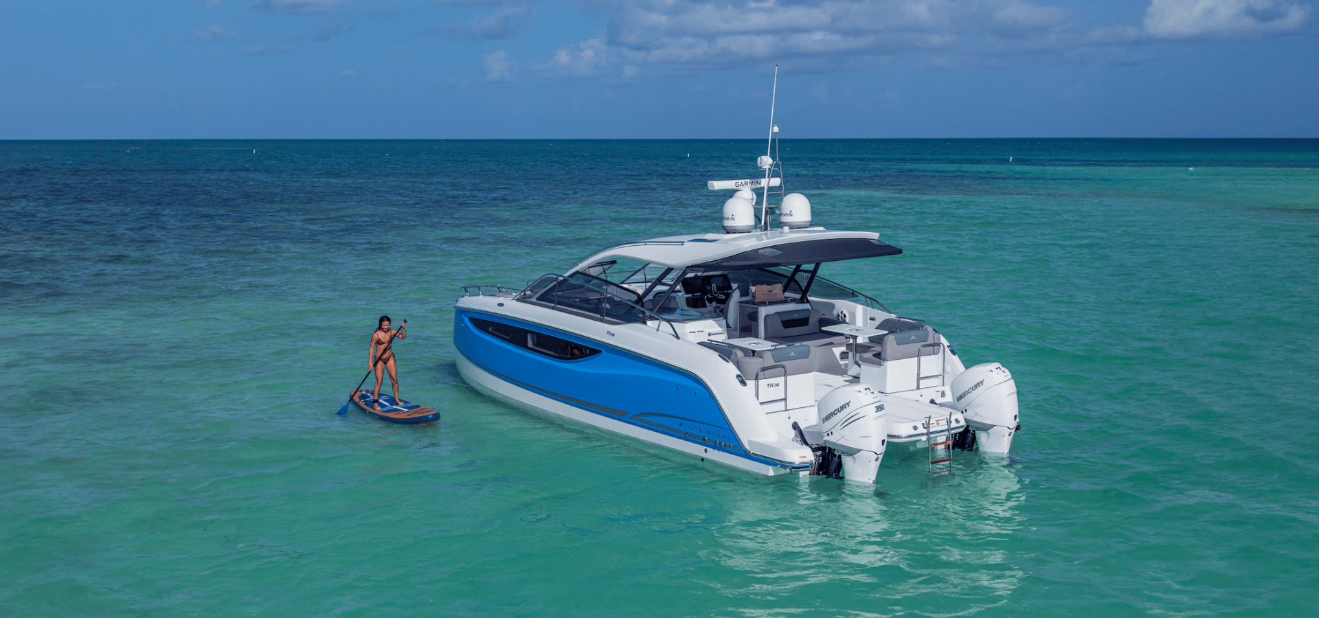 Powered by your choice of two 300hp or 350hp Mercury engines, or two 300hp Yamaha engines, the TH36 includes joystick piloting technology for easy docking and maneuvering. Customize your TH36 with options like interior and exterior colors, electronic packages, roof racks, and rod holders to match your preferences and needs perfectly.