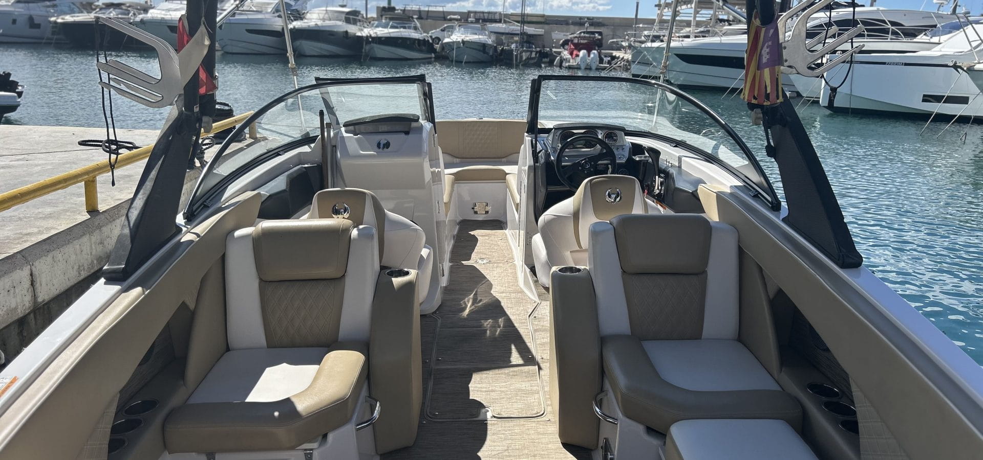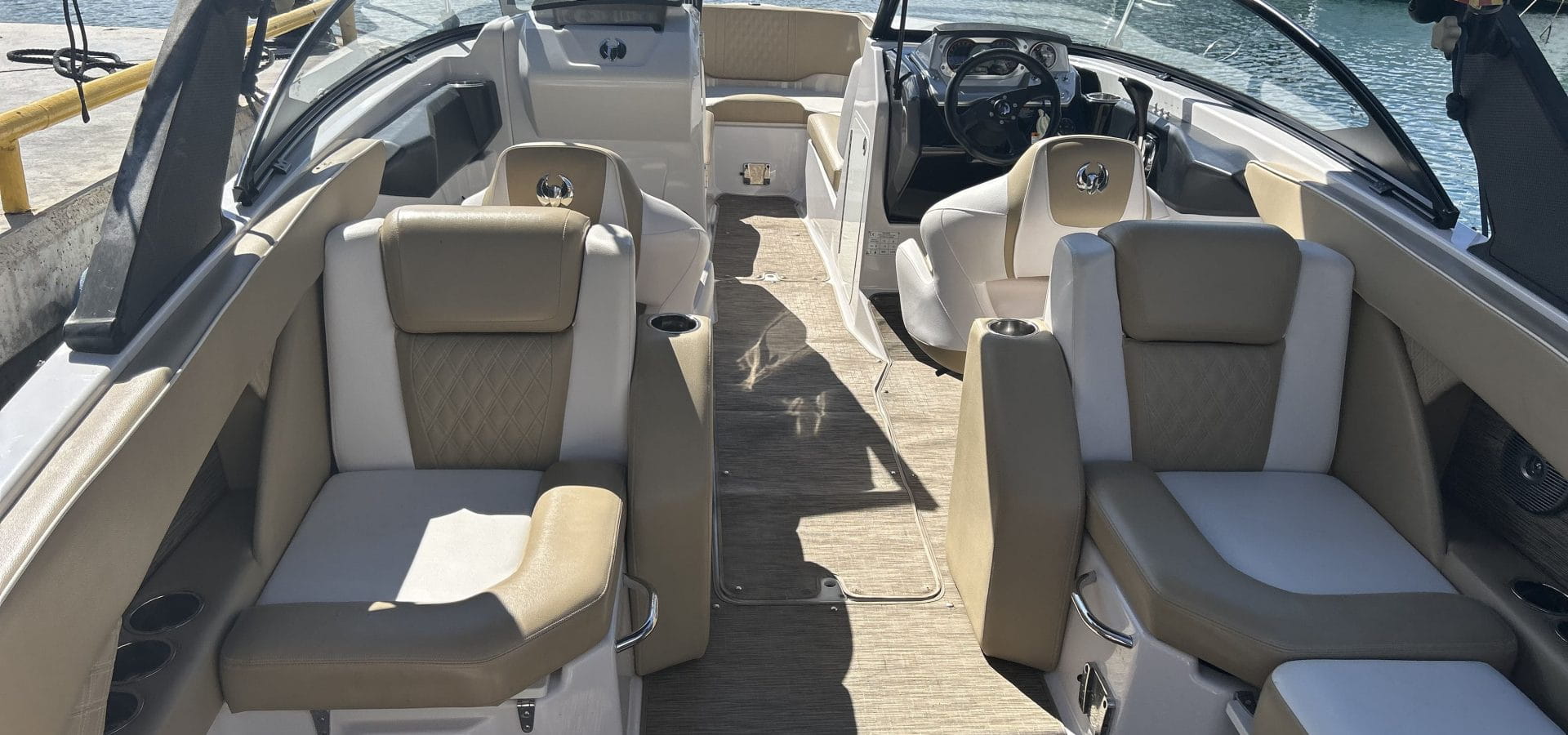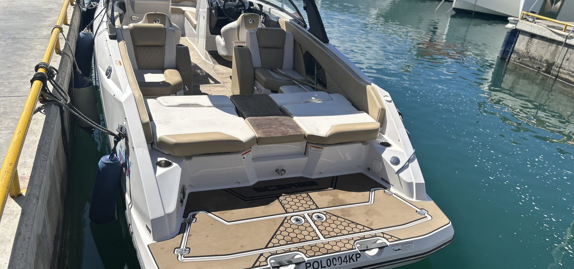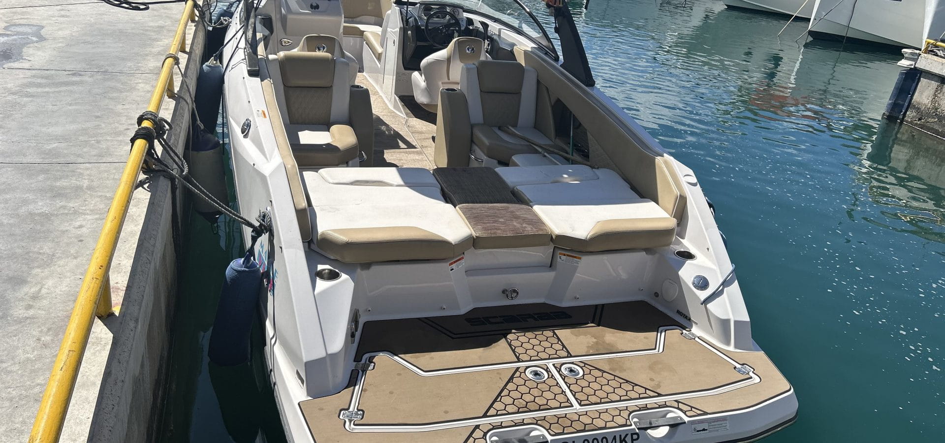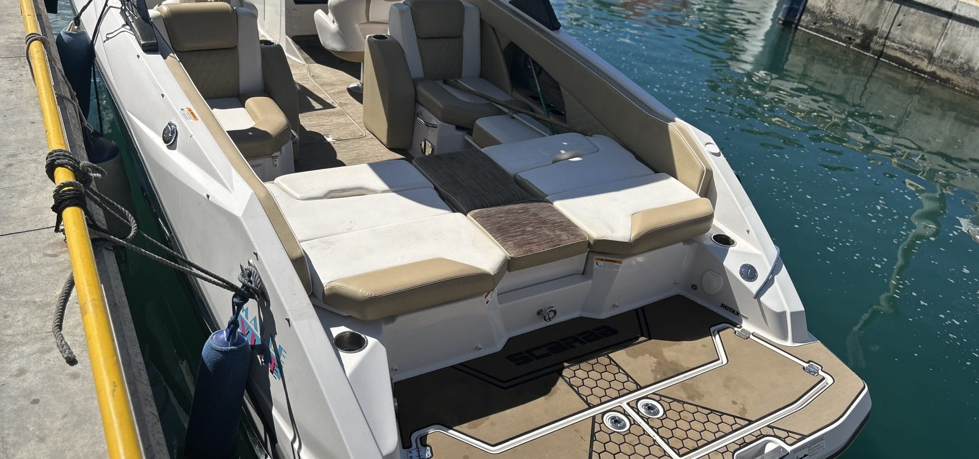 Indulge in the lap of luxury with the Scarab 255 Platinum’s attention to comfort and style. Plush seating, a premium sound system, and ample storage compartments ensure that every journey is as comfortable as it is exhilarating. And with optional upgrades like a wakeboard tower or premium upholstery, you can customise your experience to suit your unique tastes.