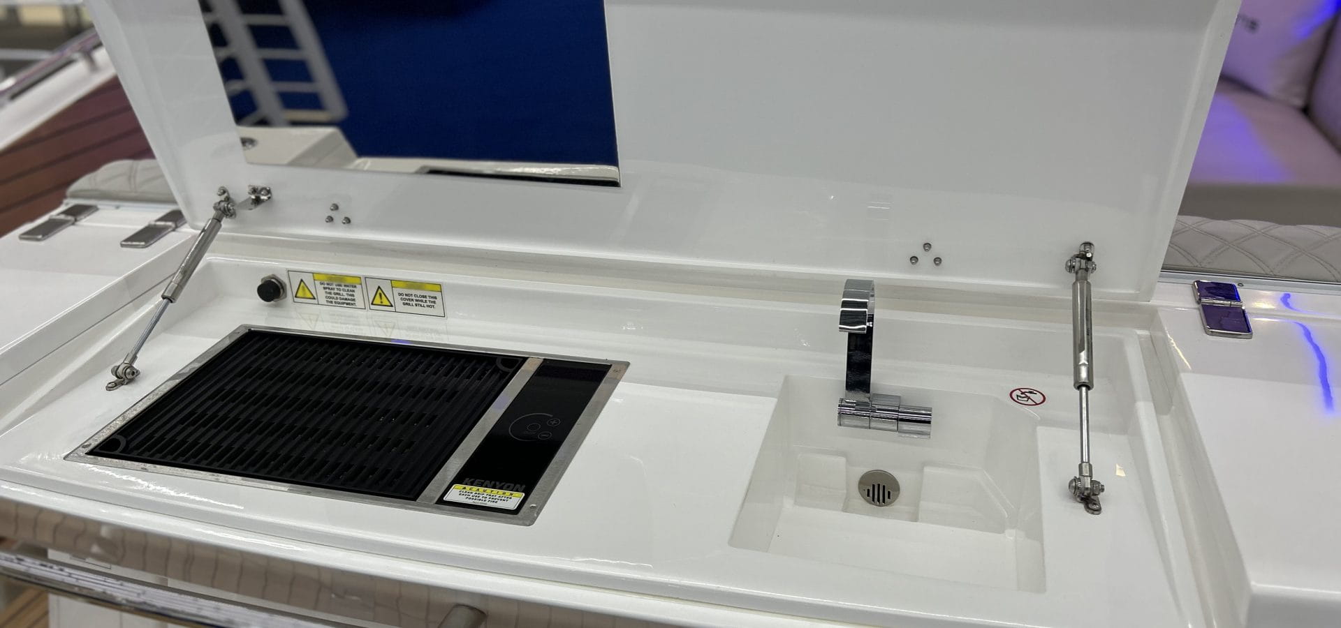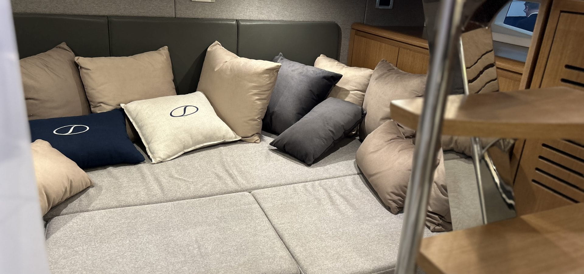 From the moment you step aboard, the Schaefer 375 surprises and delights. Its two retractable side verandas open outward, transforming the cockpit into an expansive waterfront terrace—blurring the lines between sea and space. The aft square, artfully integrated into the yacht’s architecture, invites you to relax, entertain, and soak in your surroundings with grace and ease.