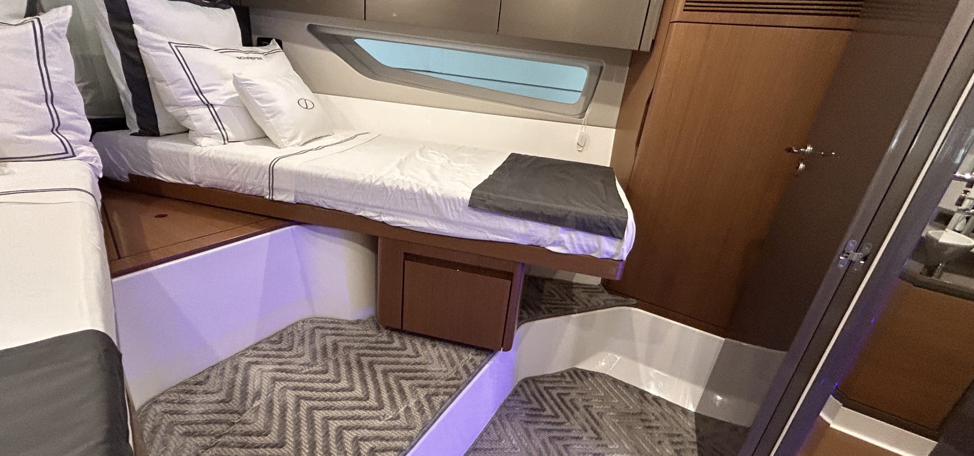 From the moment you set foot on the Schaefer 450, you’ll sense it’s different. It doesn’t simply meet expectations—it reshapes them. The spacious flybridge isn’t merely an amenity; it’s your private lounge under the sky, a place to entertain, unwind, and take in sweeping ocean views with those who matter most. Here, every detail—from the precision of the finishes to the clever use of space—has been designed with your comfort and enjoyment in mind.