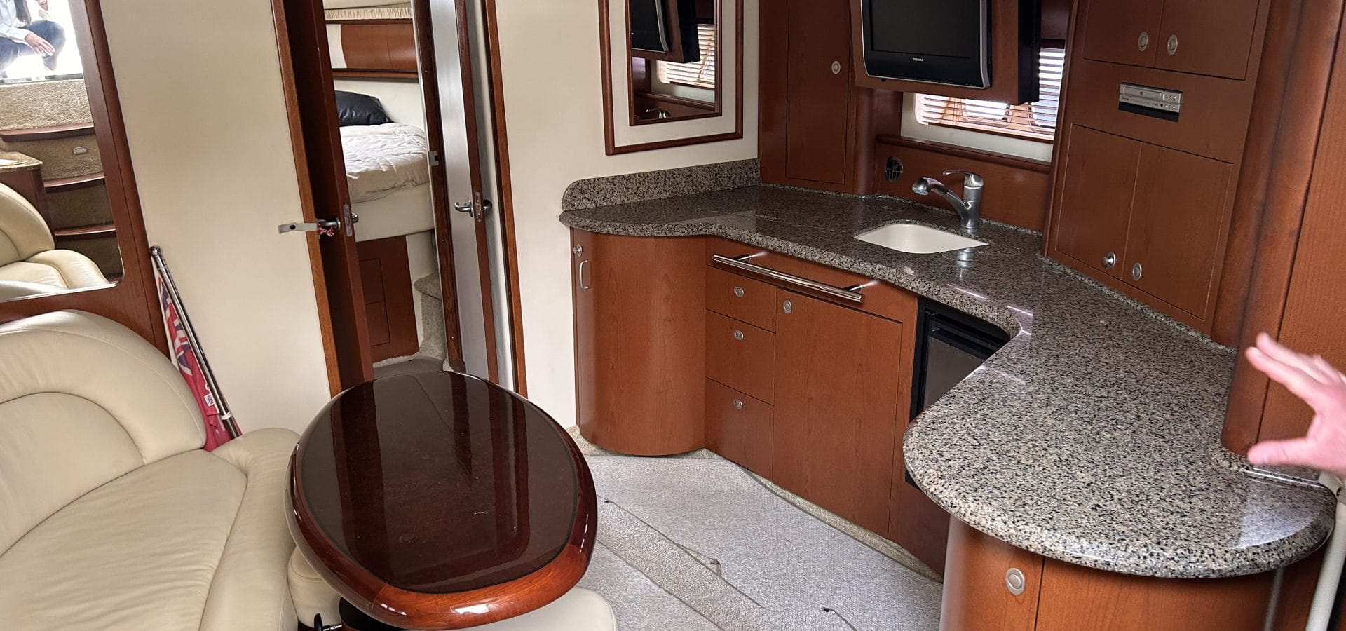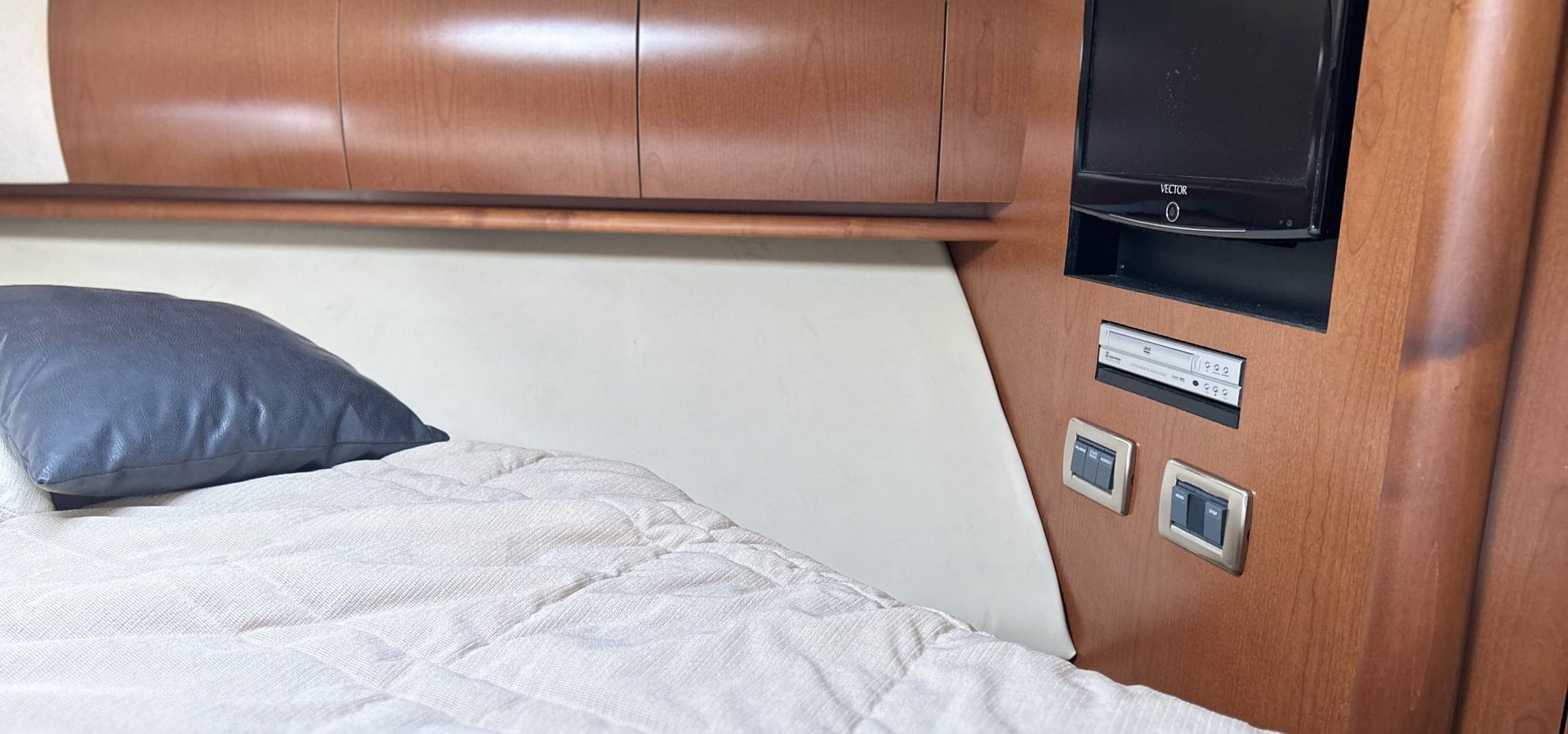 Moreover, equipped with a substantial hydraulic swim platform, air conditioning for climate control, a reliable generator for uninterrupted power, and a retractable TV for entertainment, this vessel offers an unparalleled combination of luxury and functionality.