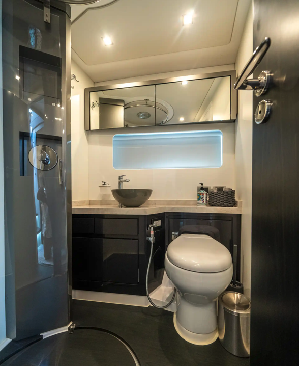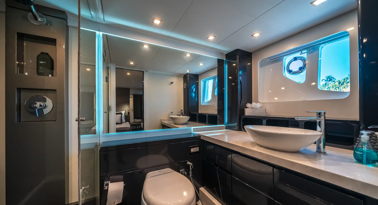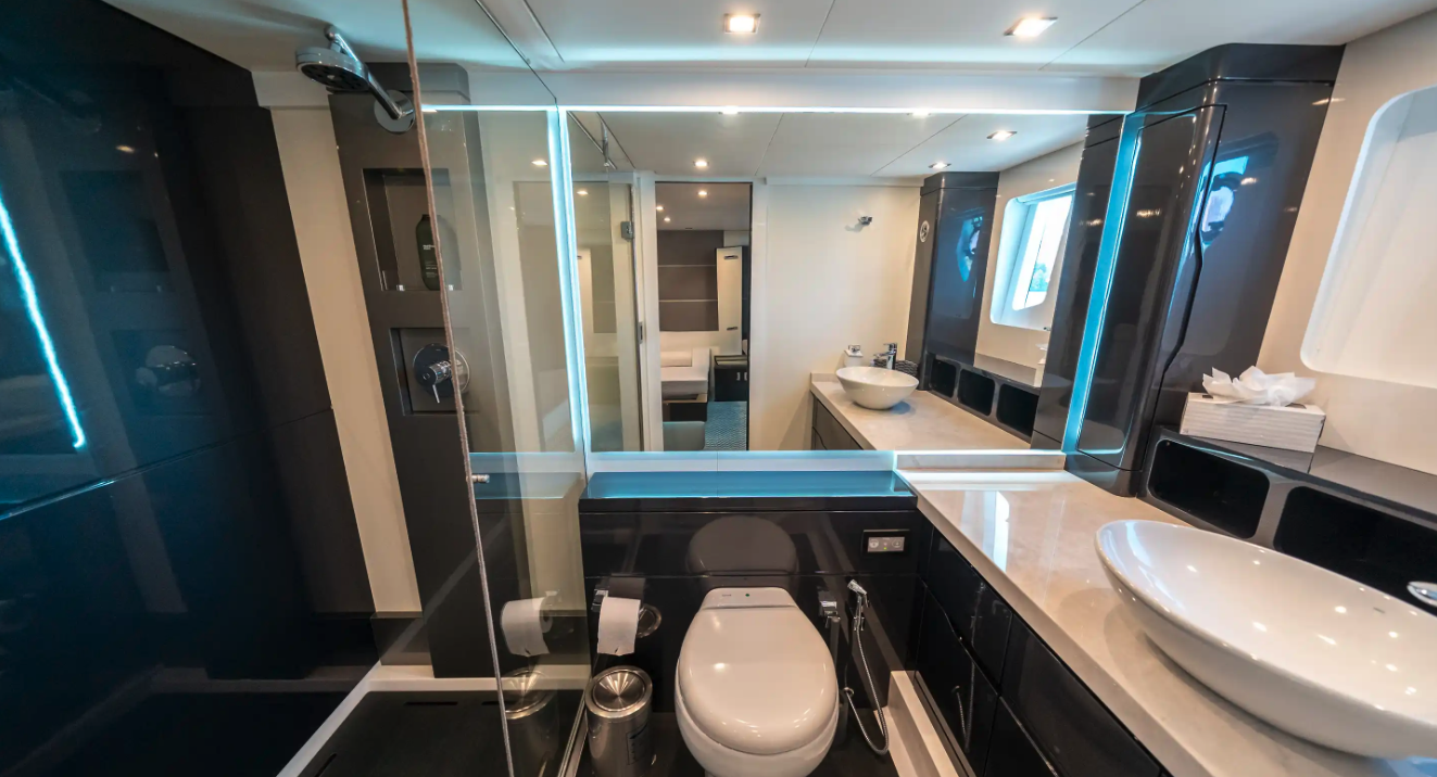 The Schaefer 660 boasts a four-cabin layout, offering privacy and comfort for all aboard. The primary suite is a private sanctuary with full beam width, exquisite detailing, and natural light. The VIP cabin in the bow features a full ensuite, while the two additional guest cabins, with flexible twin or full bed configurations, share a well-appointed day head.